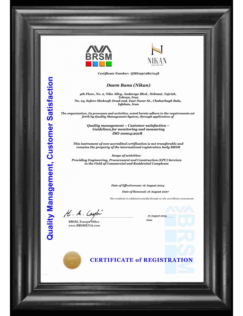 ارزشهایی که نیکان مانند سقفی بر این ستونها استوار میباشد، ارزشهایی هستند که نیکان در 18 سال تجربه در صنعت ساخت و ساز بدست آورده است. از این رو با پیشه کردن ارزشهاست که توانسته در راستای بالا بردن سطح تجربه مشتریان از داشتن یک سقف خوب برای یک زندگی خوب گام بردارد. نام نیکان همانطور که در لغتنامه آمده است به چیزی یا کسی گفته میشود که به نیکی نسبت داده شده است، و اولین شاخصه خوبی در جهان نماد "بال" میباشد که روح نیکی را در هر چیزی میدمد و این نیکی قابل انتقال و قابل تجربه میباشد که اولین الویت در ارزشهای نیکان ایجاد تجربه خوب برای مخاطبیناش است. نیکان همواره بر این باور است که ایجاد تجربه خوب در ساخت یک ساختمان از استفاده متریال خوب الویت بیشتری دارد.